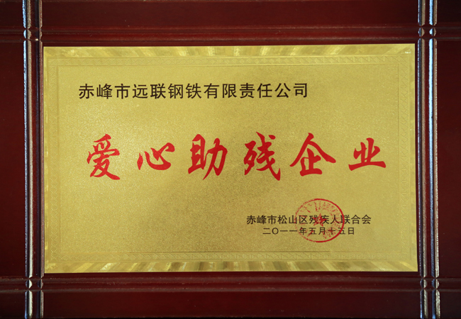 2011年,公司被赤峰市松山区残疾人联合会授予“爱心助残企业”荣誉称号