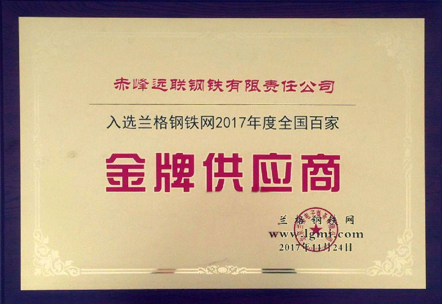 公司入选兰格钢铁网2024年度全国金牌供应商“热轧带钢十大优质品牌企业”