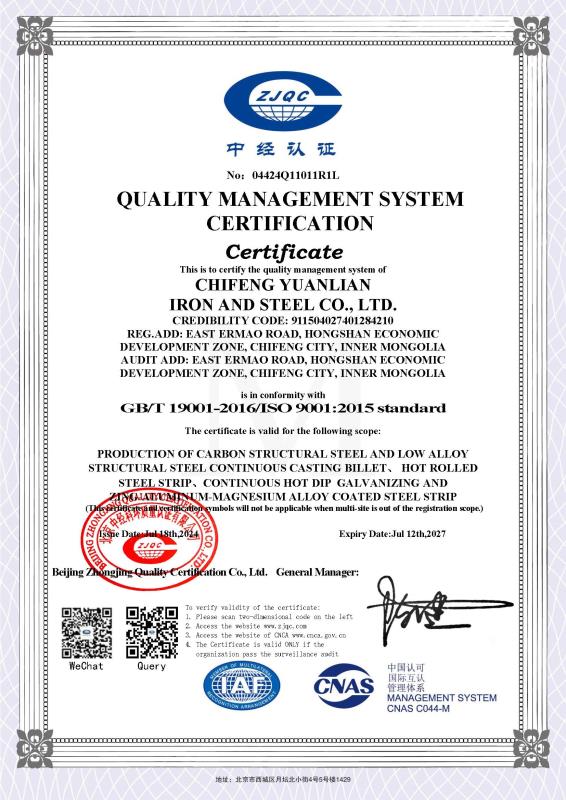 质量管理体系认证证书